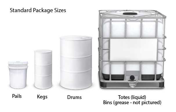 Greases are available in cartridges, pails, kegs, drums, ICB totes, and bulk.